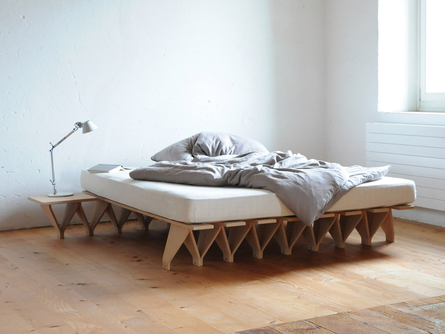 Tojo-lieg modulares Bett – Buche Multiplex, erweiterbar zum Familienbett, 210 cm Länge