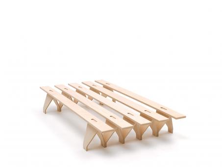| Material: Buche Multiplex | Belastbarkeit: 250 kg | Geeignet für Matratzen mit 210 cm Länge | ||