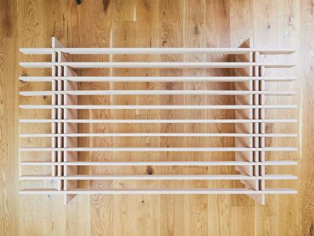 Das Tojo-parallel L ist die verlängerte Variante des preisgekrönten Steckbettsystems von Tojo – ideal für besonders große Menschen oder extralange Matratzen (bis 220 cm). Ganz ohne Schrauben oder Werkzeug lässt sich dieses Bett in wenigen Minuten aufbauen: Die sechs stabilen Auflagen werden aufgestellt, die Latten längs eingesteckt – fertig ist ein stabiles, minimalistisches Bett.