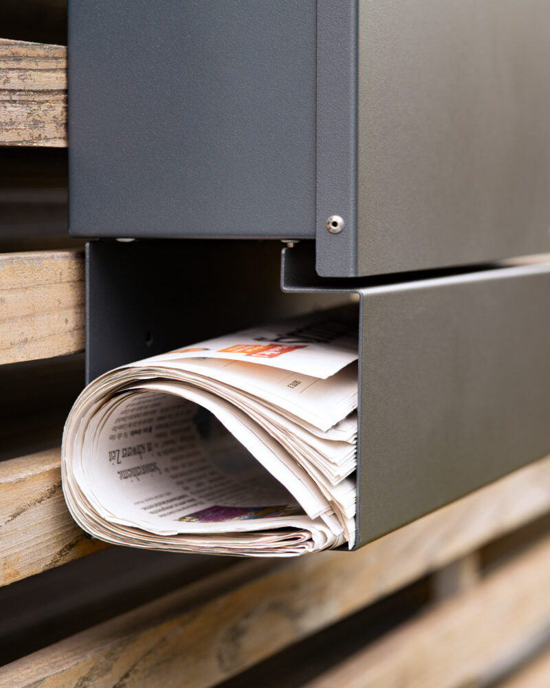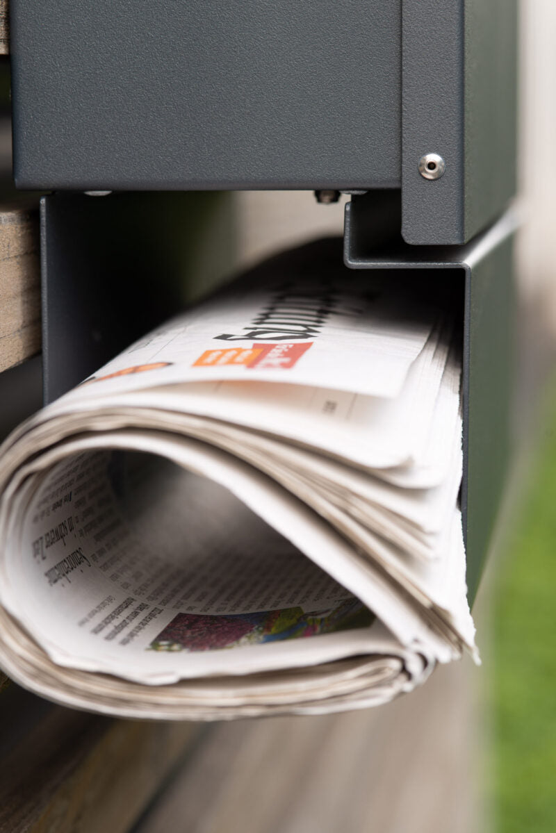 Für Zeitungsleser verfügt der LETTERMAN 5 über eine zusätzliche Zeitungsrolle (40 cm breit), die ein knitterfreies Leseerlebnis garantiert. Im Lieferumfang sind außerdem zwei Schlüssel und ein automatisches LED-Licht enthalten, das für zusätzliche Sicherheit und Komfort sorgt. (Hinweis: Die Zeitungsrolle ist bei Lieferung sicher im Inneren des Briefkastens verstaut.)