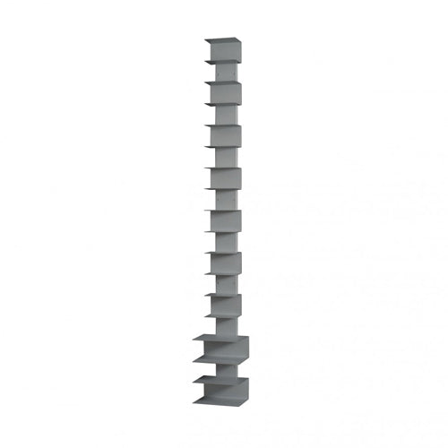 Das Regal Paternoster ist ein Bücherstapelregal für Hochstapler. Auf Bildband- oder Taschenbuchbreite können Sie Ihre Bücher hoch stapeln. Platz sparen – hoch stapeln. Ziehen Sie ein Buch von ganz unten hervor, bleibt der Stapel erhalten. Die Bücher werden flach übereinander gelegt und in 13 cm Abständen von den Regalböden gehalten. Die Buchtitel sind waagerecht bequem lesbar.