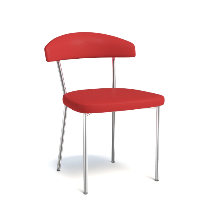 Elli ein schlichter Stuhl mit hohem Komfort: der Stuhl Elli ist mit seiner bequemen Sitzfläche und der halbovalen Rückenlehne als Ess- oder Arbeitszimmerstuhl genauso geeignet wie für Wartezimmer oder Seminarräume. Das Chromgestell ist von passenden Proportionen und der Farbton der Polsterung harmonisch auf den des Gestells abgestimmt.
