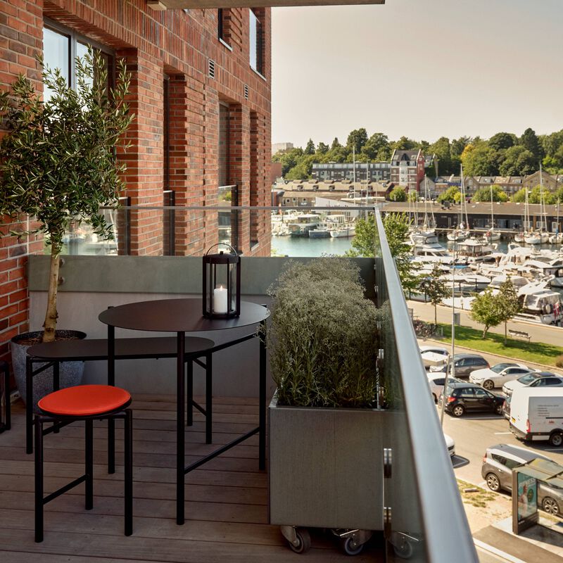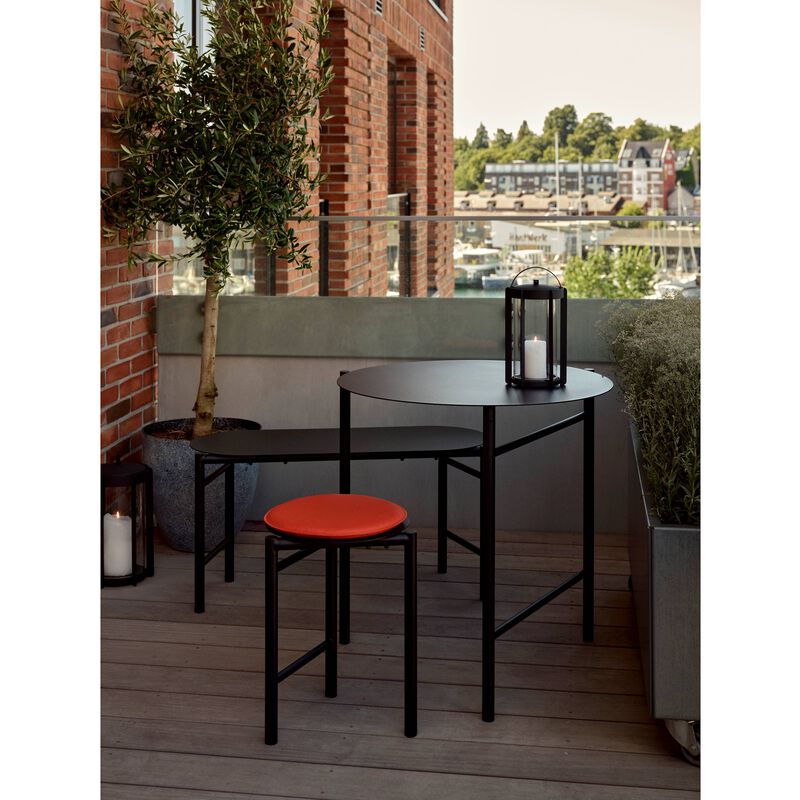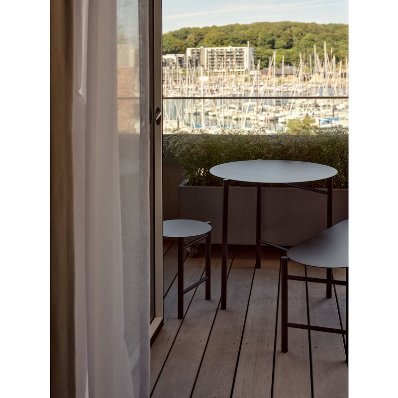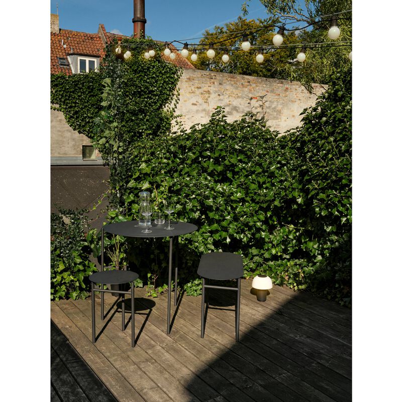 Die Disc Bank mit einer Sitzbreite von 90 cm bietet bequem Platz für zwei Personen. Trotz ihres luftigen Designs ist sie äußerst robust. Gefertigt aus pulverbeschichtetem Stahl, eignet sich die Bank perfekt für den Außeneinsatz – ideal für Balkone, kleine Terrassen oder in Ferienhäusern.