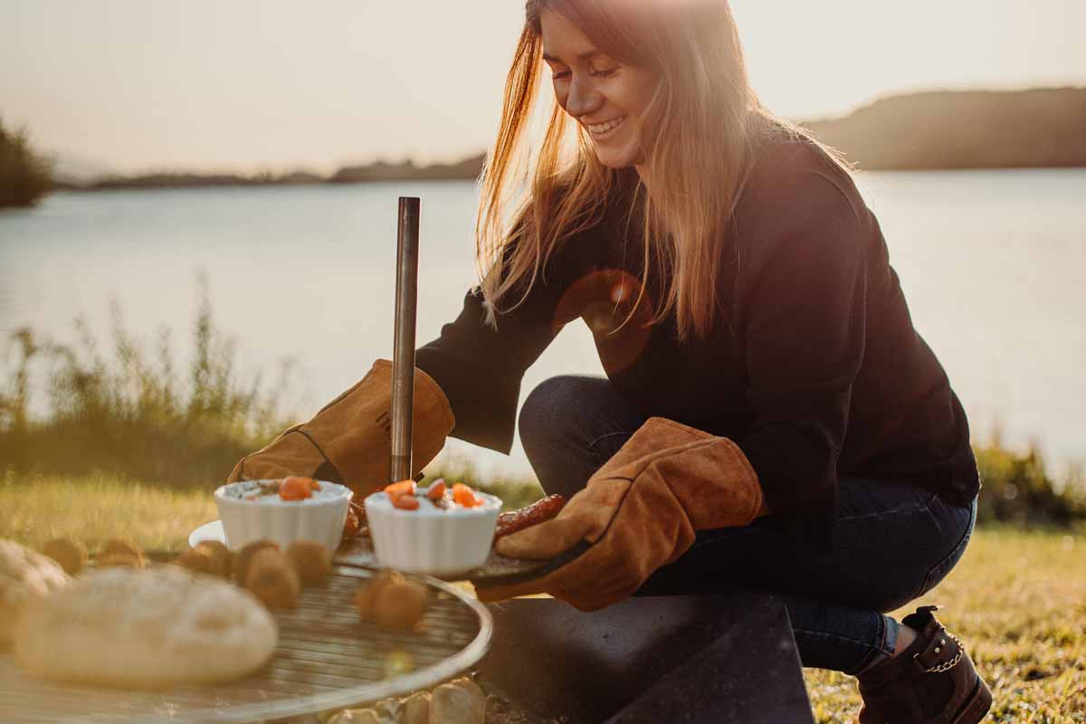 Der TRIPLE Tisch von höfats ist die perfekte Ergänzung zur TRIPLE Feuerschale und sorgt für praktischen Komfort im Outdoor-Erlebnis. Ob du Tee, Glühwein oder Grillgut darauf abstellst – die Edelstahl-Ablage ist stabil, hitzebeständig und vielseitig einsetzbar. Und das Beste: Sie lässt sich nach innen schwenken und absenken – perfekt, um direkt über dem Feuer einen Eintopf zu kochen oder Speisen warmzuhalten.