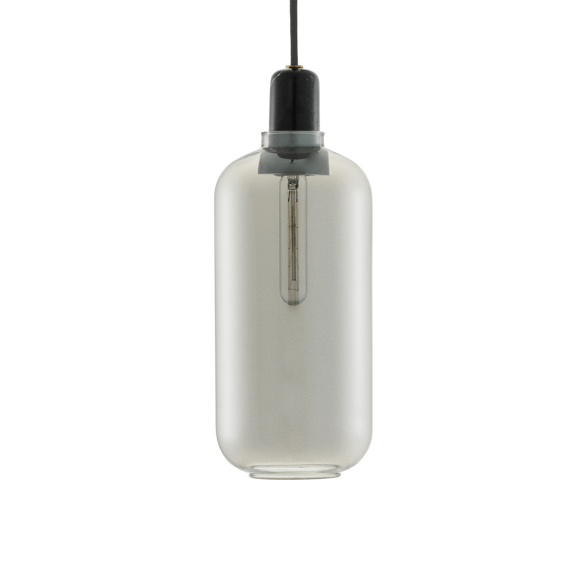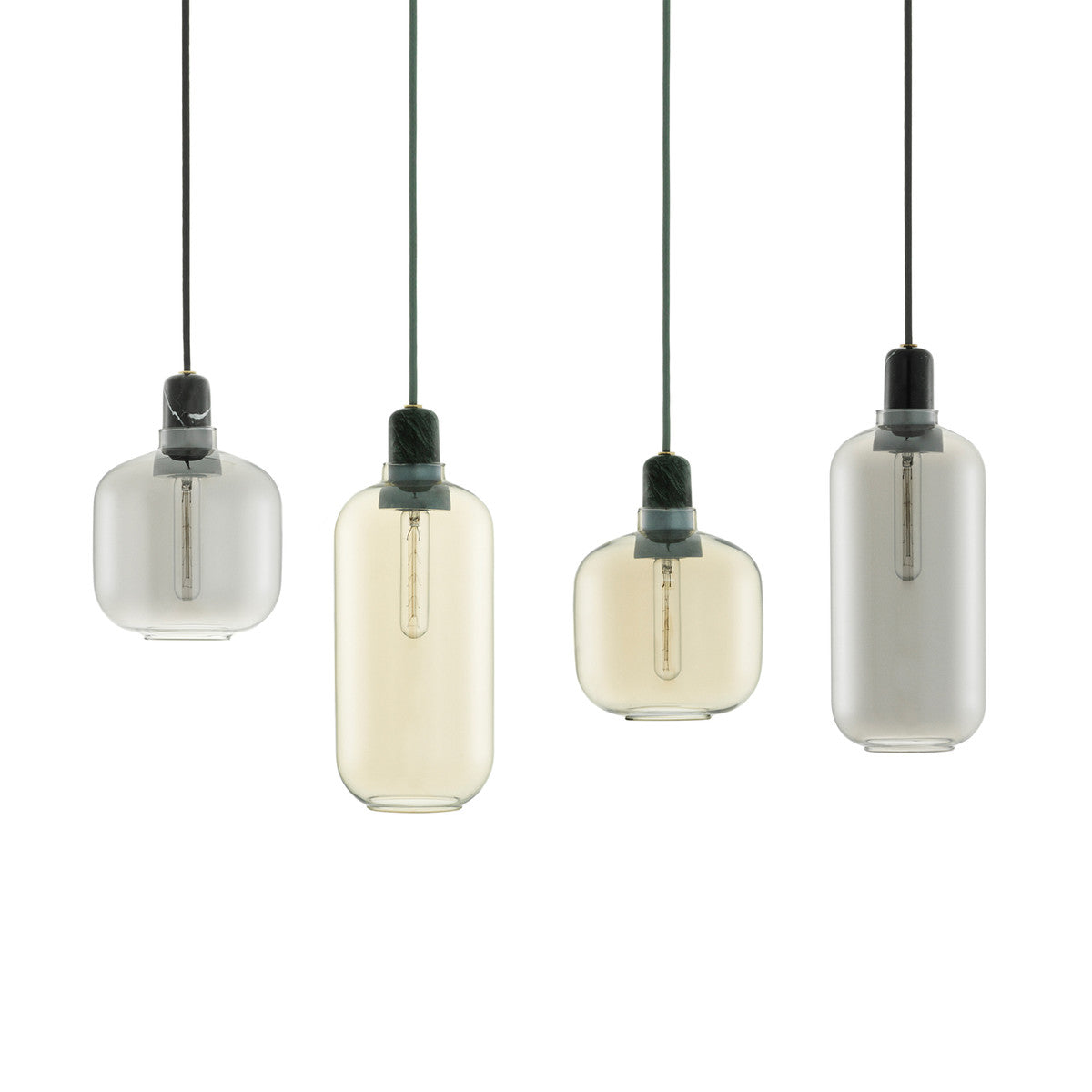 Die Amp Lamp ist von Simon Legald für Normann Copenhagen. Der schwere Marmor ist ein interessantes Gegengewicht zum fragilen Glas.
