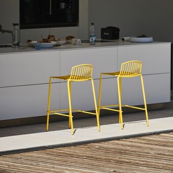 Der Jan Kurtz Mori Barhocker bringt Farbe und Stil in jeden Raum, egal ob drinnen oder auf Ihrer Terrasse. Genießen Sie höchsten Komfort und ein modernes Design.