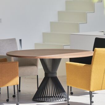 Entdecken Sie den Moro Esstisch von Jan Kurtz – eine exquisite Kombination aus filigraner Optik und robuster Bauweise. Das einzigartige 'gebundene Gestell' trägt die Tischplatte auf elegante Weise und schafft eine leichte, luftige Atmosphäre in Ihrem Essbereich.