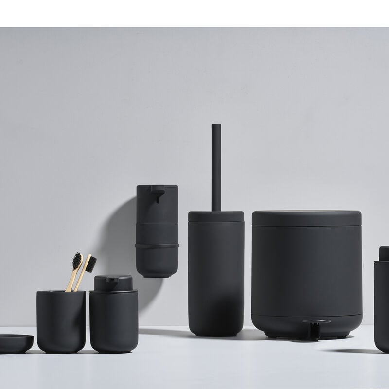 Perfekte Ergänzung: Kombinieren Sie den Pedaleimer mit der Ume-Toilettenbürste und dem Seifenspender für ein harmonisches Gesamtbild. Die durchdachten Details, wie die lange Tülle des Seifenspenders für optimale Pumpfunktion und der praktische Innenbecher der Toilettenbürste, unterstreichen die Funktionalität.