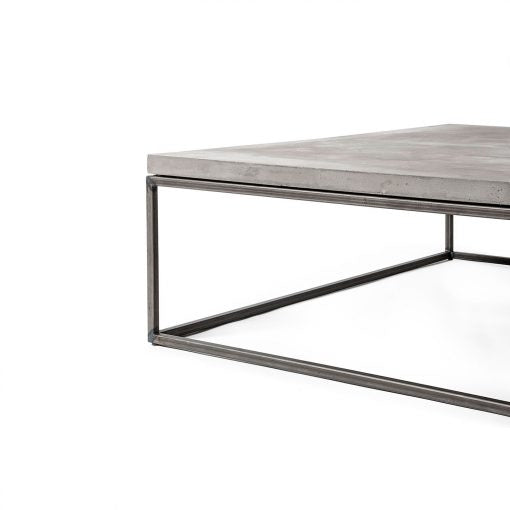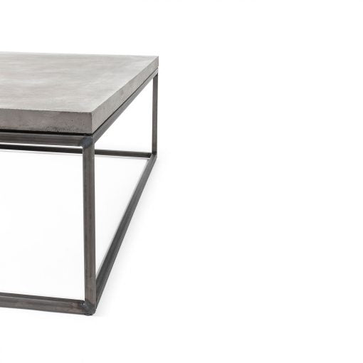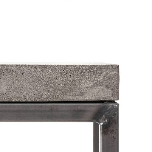 Das Gestell besteht aus pulverbeschichtetem Stahl in tiefem Schwarz, veredelt mit einer samtigen Soft-Touch-Oberfläche, die den industriellen Charakter des Betons stilvoll ergänzt. Die Tischplatte ist mit einer wasser- & ölabweisenden Mattlack-Versiegelung geschützt, wodurch sie pflegeleicht und langlebig bleibt.