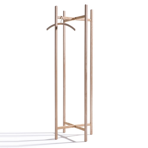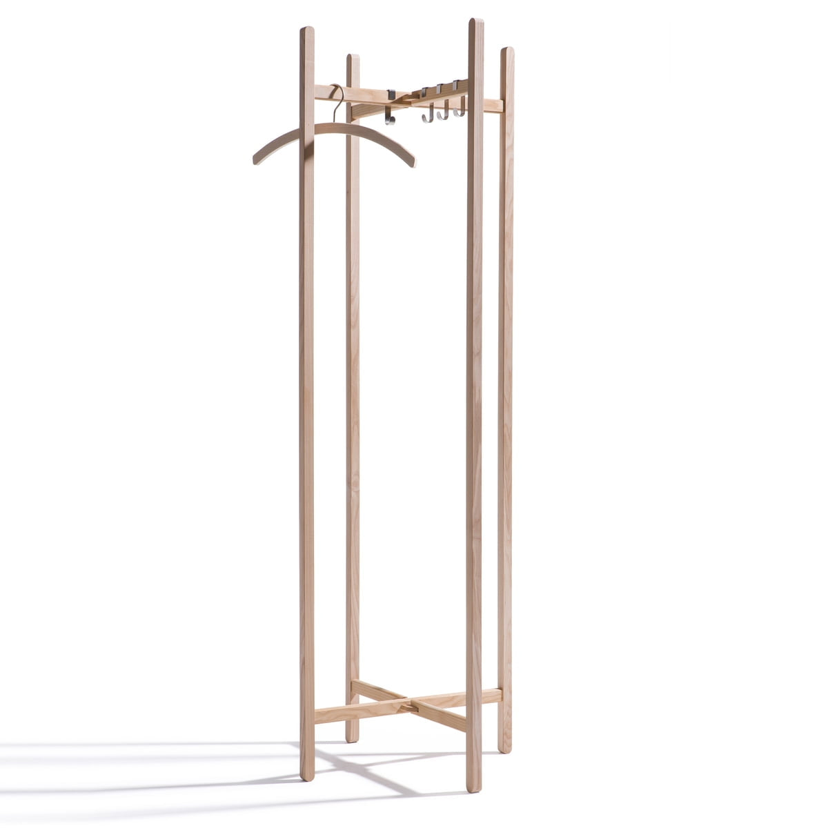 Die Garderobe New Hang On von side by side vereint modernes Design mit cleverer Funktionalität. Gefertigt aus hochwertigem Eschenholz, bietet sie reichlich Platz für Jacken, Mäntel und andere Kleidungsstücke. Ob leger über die Füße gehängt oder ordentlich an Kleiderbügeln – hier findet alles seinen Platz.