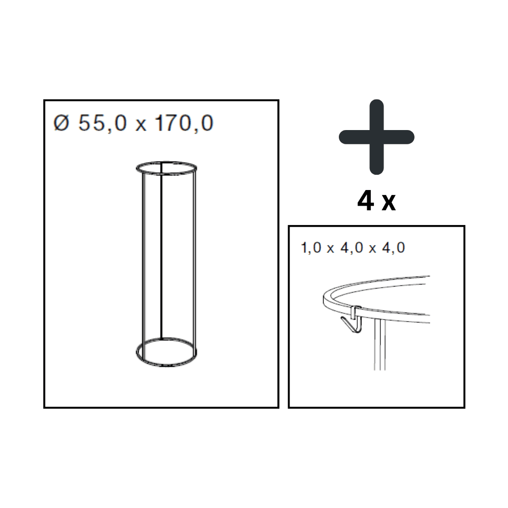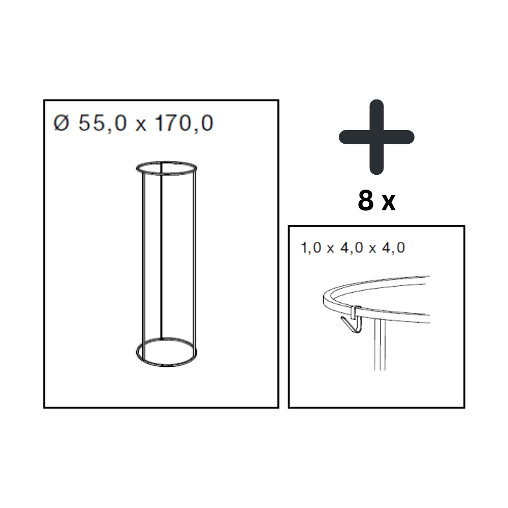 Die senkrechten Stäbe werden mit den oberen und unteren Ringen verschraubt. Das Montagematerial ist im Lieferumfang enthalten.
