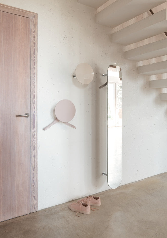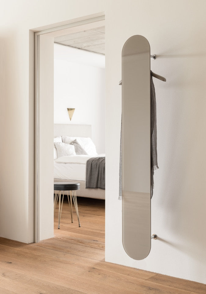 Die SLOT Garderobe ist in runder oder länglicher Form erhältlich und kann mit Glas-, Spiegel- oder Lackfronten ausgestattet werden.