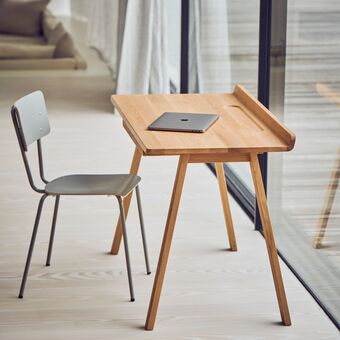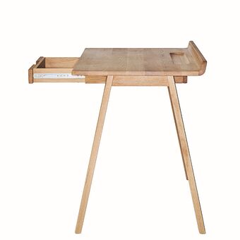 Der Schreibtisch überzeugt durch sein auf das Wesentliche reduziertes Design mit klaren Linien und der warmen Ausstrahlung von geöltem Eichenholz. Er fügt sich harmonisch in jedes Arbeitszimmer ein und schafft eine angenehme Arbeitsatmosphäre.