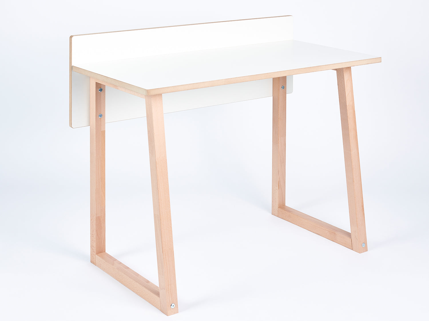 Der Tojo-kids werk ist ein hochwertiger und schlichter Kinderschreibtisch, der Funktionalität mit einem modernen Design vereint. Die abgerundeten Ecken sorgen für mehr Sicherheit im Kinderzimmer, während das offene Gestell aus natürlichem Buchenholz dem Tisch eine leichte und freundliche Anmutung verleiht.