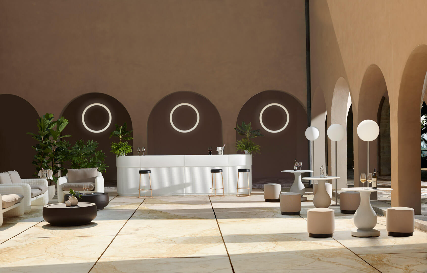 - Modularer Bar-Tresen aus Polyethylen, geeignet für den Innen- und Außenbereich.