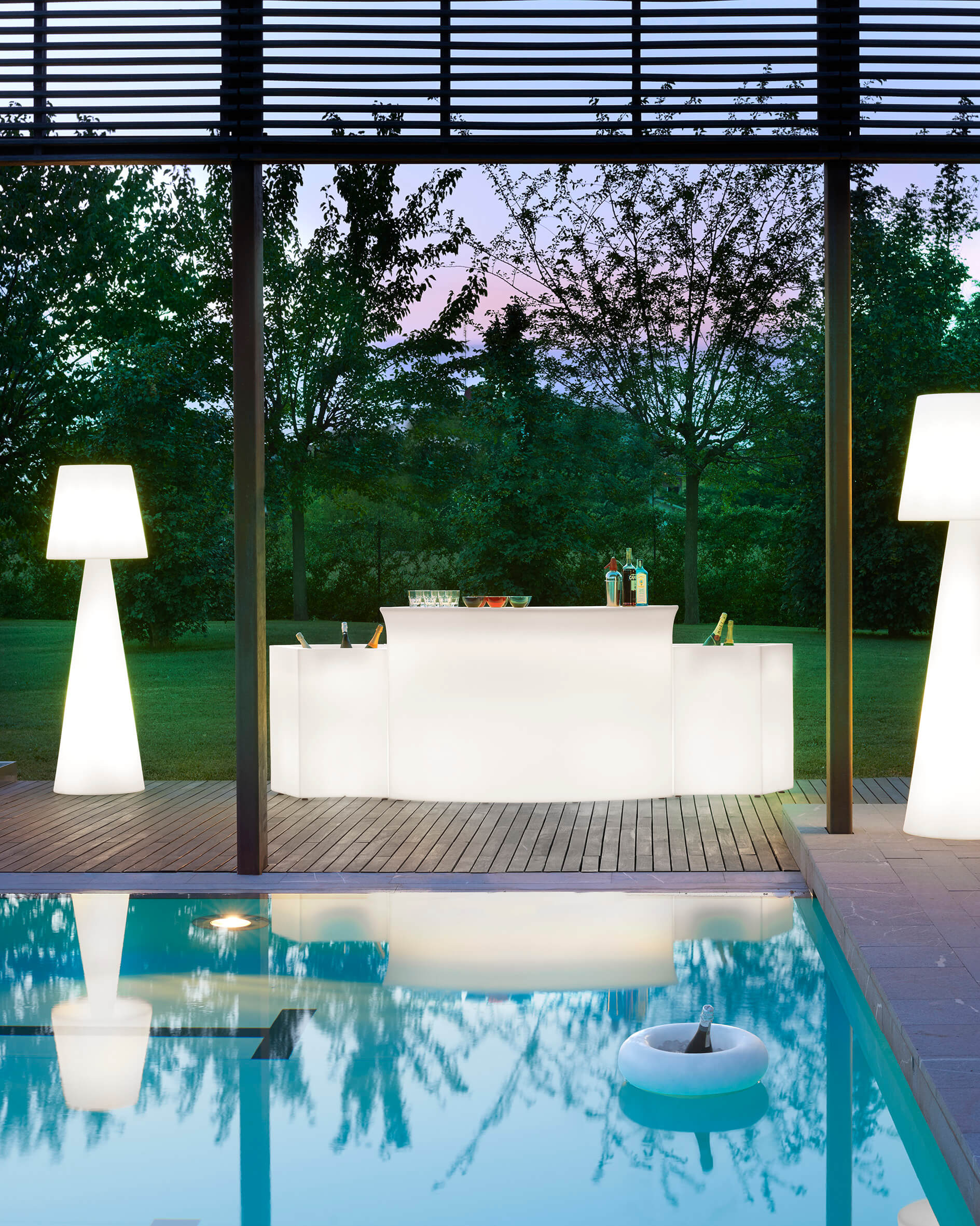 Der ICE BAR ist eine innovative, mobile Bar-Lösung, entworfen vom renommierten SLIDE Studio. Seine modulare Bauweise ermöglicht den flexiblen Einsatz als Flaschenkühler oder Eisbehälter. In Kombination mit dem beleuchteten Tresen Break Bar wird der ICE BAR zum Herzstück jeder stilvollen und minimalistischen Veranstaltung, egal ob drinnen oder draußen. Er eignet sich ideal, um sowohl große als auch kleine Räume aufzuwerten und ihnen mit einem leuchtenden Möbelstück Magie und eine besondere Inszenierung zu verleihen. Perfekt für den Innen- und Außenbereich geeignet.