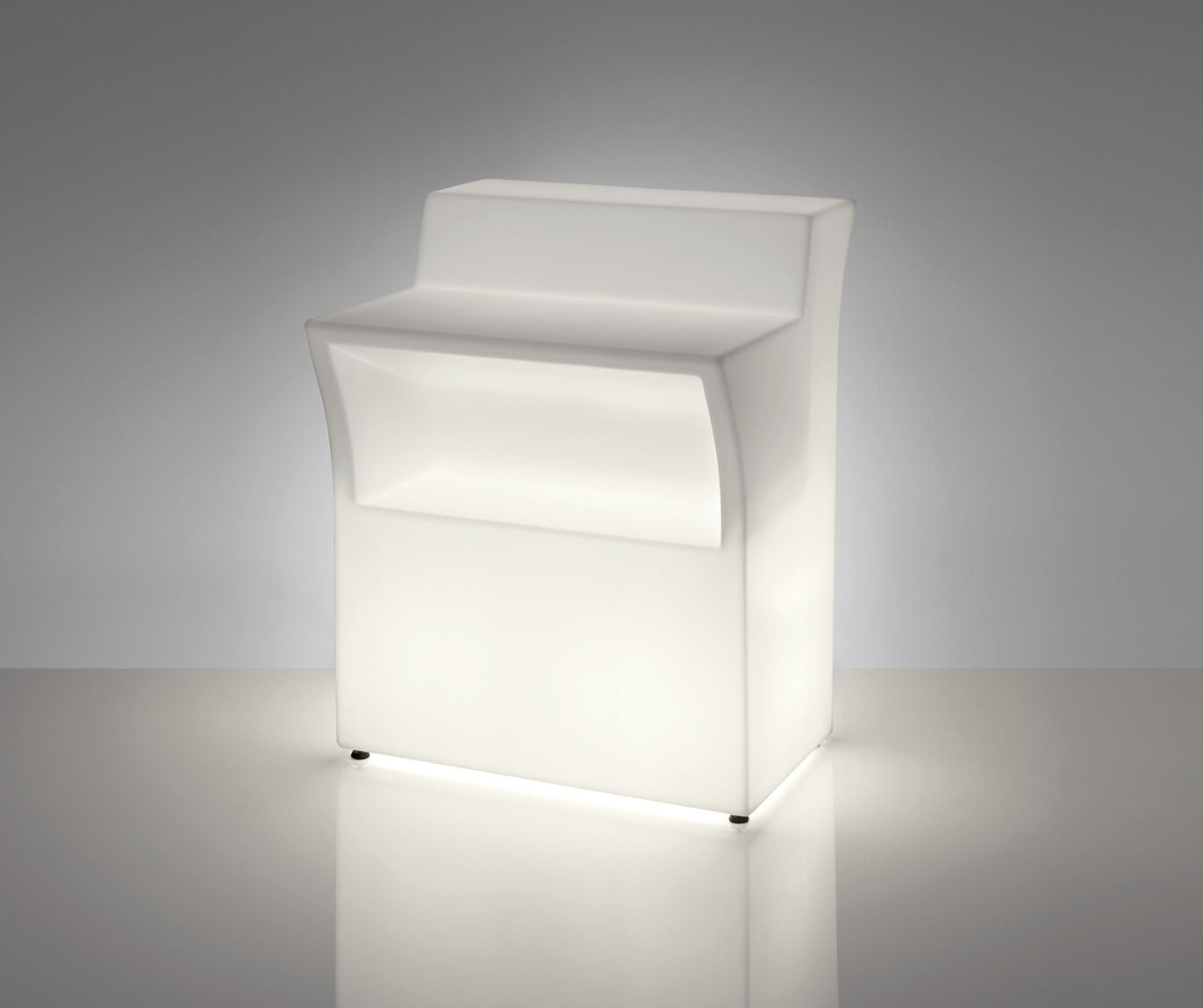 Der modulare Bartresen aus robustem Polyethylen ist für den Innen- und Außenbereich konzipiert und bietet Platz für bis zu zwei Leuchtmittel.
