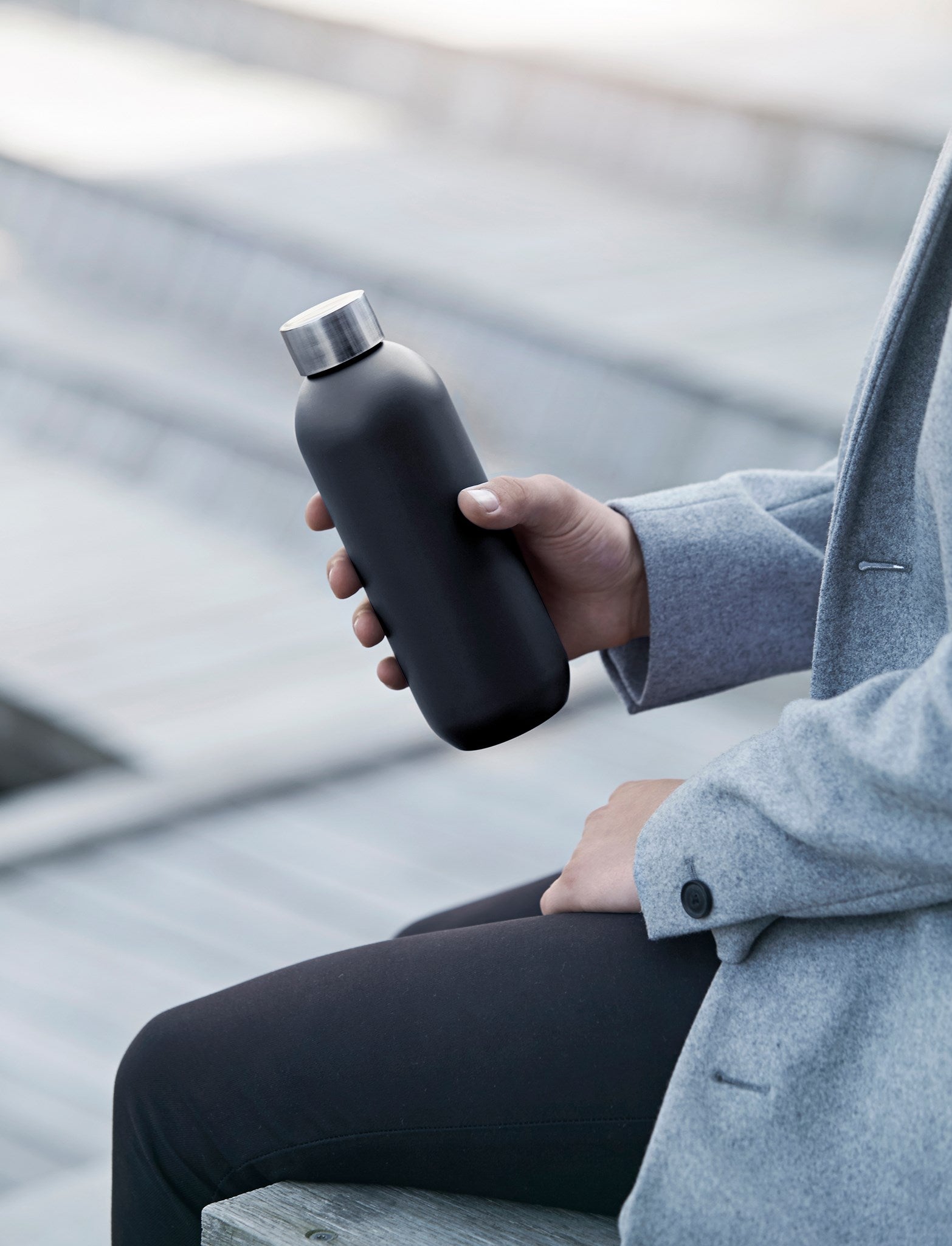Keep Cool ist eine schöne, robuste Isolier-Trinkflasche, die vom italienischen Designerduo Debiasi Sandri entworfen wurde. Mit der Keep Cool Isolier-Trinkflasche kann jeder seinen persönlichen Favoriten auswählen und den spontanen Kauf von Einwegflaschen mit Wasser oder anderen Getränken vermeiden. Damit schont man die Umwelt und den Geldbeutel. Keep Cool ist aus Edelstahl mit schwarzem Pulverlackierung. Die Trinkflasche fasst 0,6 l. und hält Ihr Getränk 24 Stunden lang kalt - oder 12 Stunden lang heiß. Gewinner des German Design Award 2020.