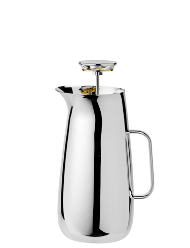 Entdecken Sie den Teebereiter mit Sieb, ein Meisterwerk des britischen Stararchitekten Norman Foster. Dieser Teekocher vereint puristische Skulpturformen und sanfte Linien zu einem eleganten Designobjekt für Ihre Küche.