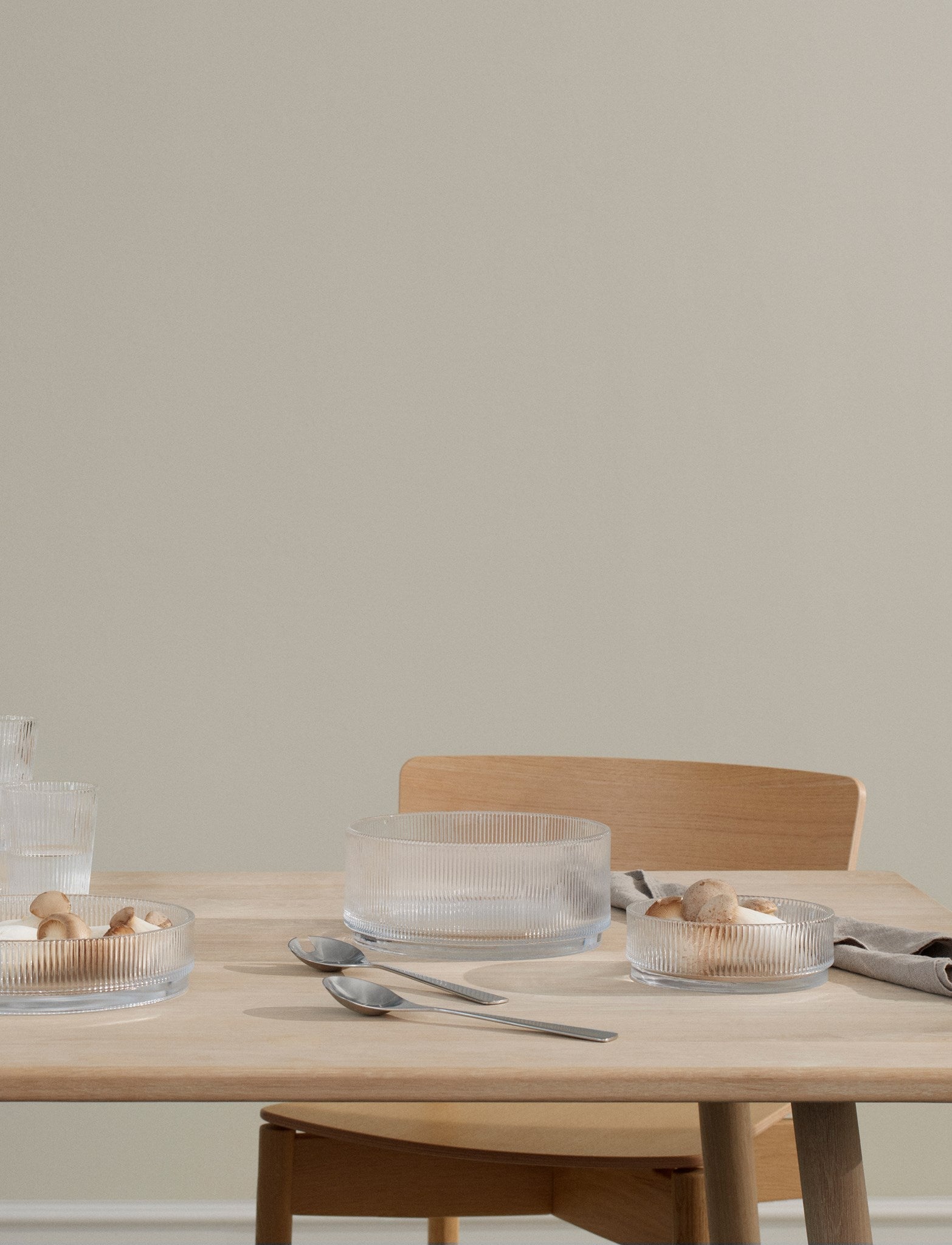 Pilastro Servierschale für Salate, Obst oder als dekorative Schale auf dem Küchen- oder Esstisch. Das Design harmoniert mit den meisten modernen Einrichtungsstilen und passt gut zu den meisten Tafelservice. Die Pilastro Serie ist vom eleganten und funktionalen Art-déco-Stil der 1920er Jahre inspiriert. Vollenden Sie den geriffelten gläsernen Ausdruck auf dem Esstisch, indem Sie die Servierschale mit den anderen Artikeln der Serie kombinieren. Serie Pilastro Die Servierschalen sind stapelbar.