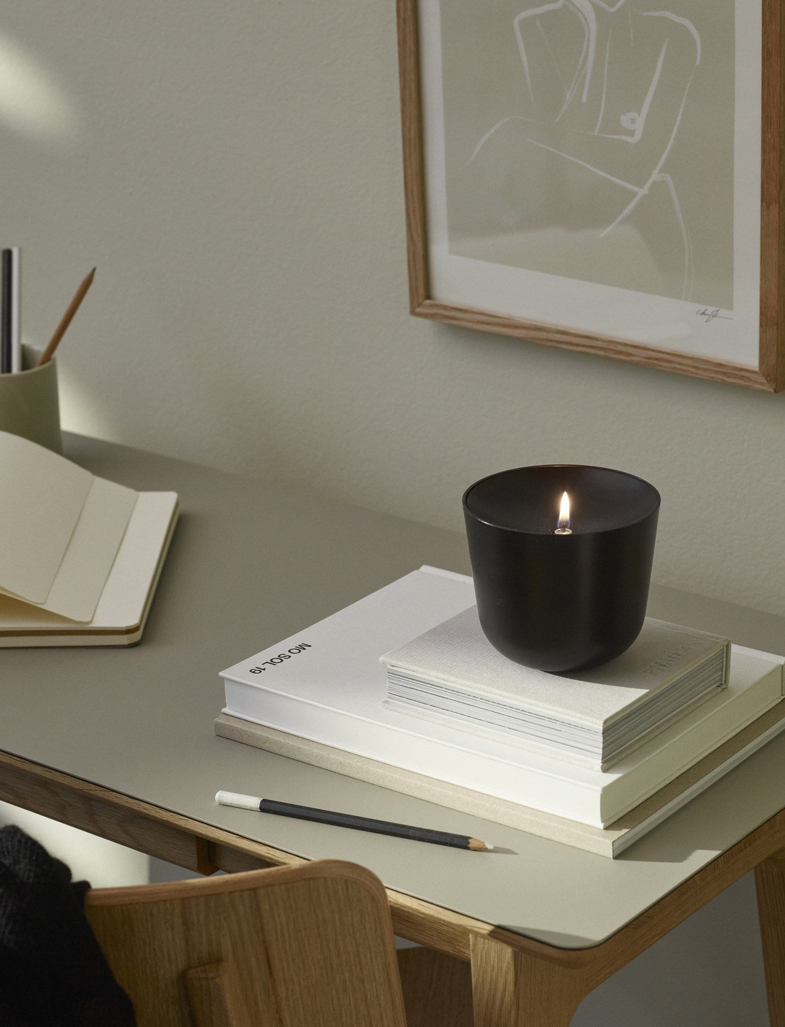 Die Öllampe Solis besteht aus zwei Teilen: einem Halter und einem Deckel, die perfekt aufeinanderpassen. Ein Ergebnis aus Steltons Erfahrung mit dem Material und dem Streben nach Präzision. An der Unterseite des Halters befindet sich eine Aussparung, durch die man die Kerze mit einem Finger anheben kann, um die beiden Teile zu trennen. Aufmerksamkeit! Die Leuchtquelle für die Solis Öllampe sind zu 100 % pflanzliche Ölkerzen, die separat erhältlich sind.