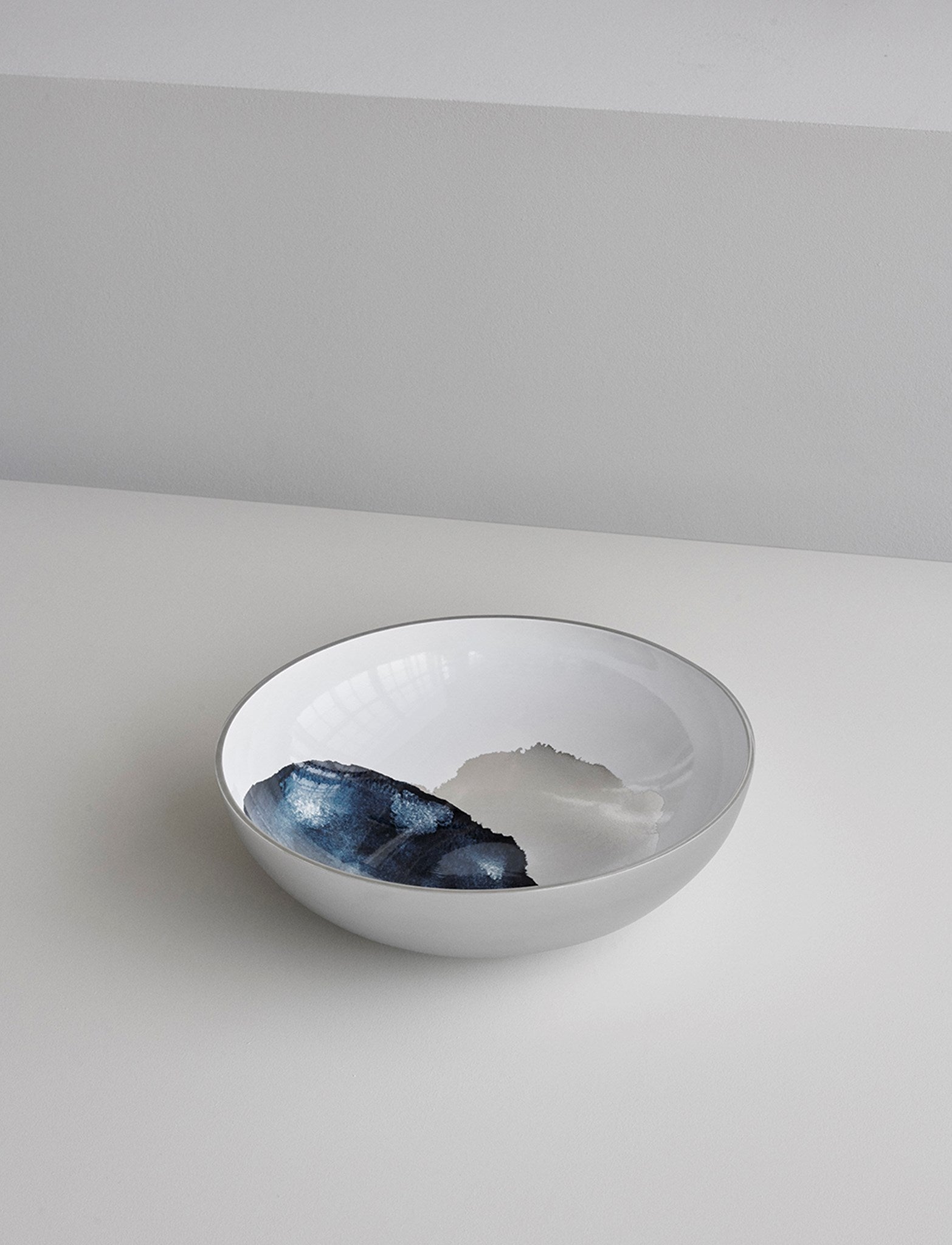 Die Stockholm Aquatic Platin Schale, entworfen von Bernadotte & Kylberg, ist inspiriert von den Farben des schwedischen Schärengartens und der Ostsee. Die Aquatic Platin Schale steht wunderschön allein und ist ein kleines Kunstwerk für sich. Im Paket enthalten ist ein exklusives Aquatic Poster.