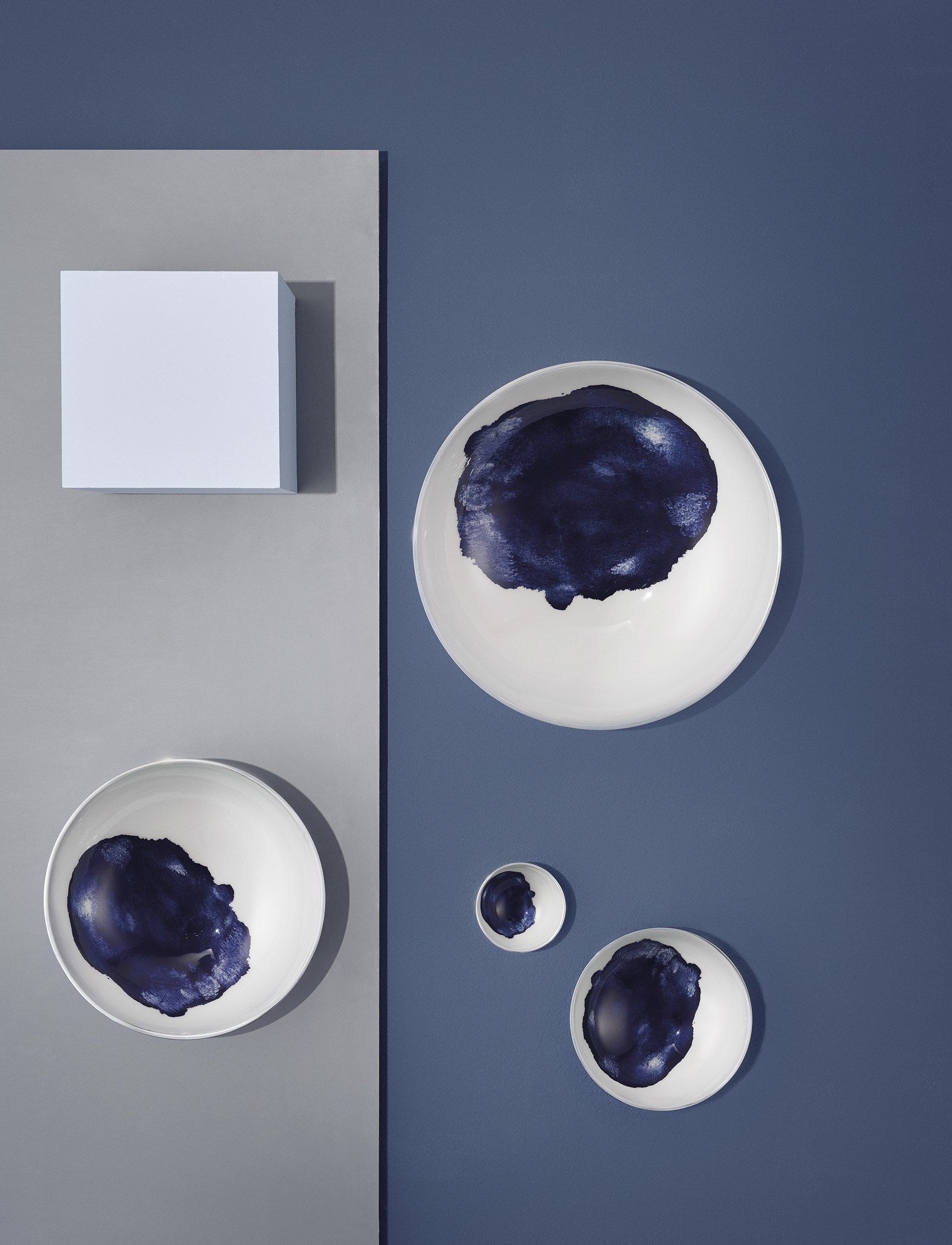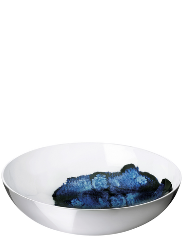 Mit Stockholm hat das schwedische Designerduo Bernadotte & Kylberg eine ikonische und zeitlose Serie von Vasen und Schalen entworfen. Die Designer haben eine Reihe von organisch, weich und zeitlos geformten Vasen und Schalen gestaltet und diese mit zwei verschiedenen ausdrucksstarken, künstlerischen Mustern kombiniert. Die grosse Schale aus Aluminium mit der schönen blauen Dekoration ist ein prächtiges Objekt auf dem Tisch oder Sideboard und eine perfekte Geschenkidee für Hochzeiten and Jubiläen.