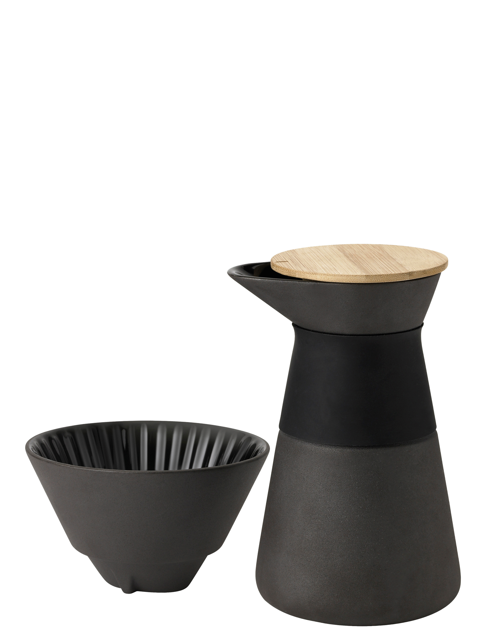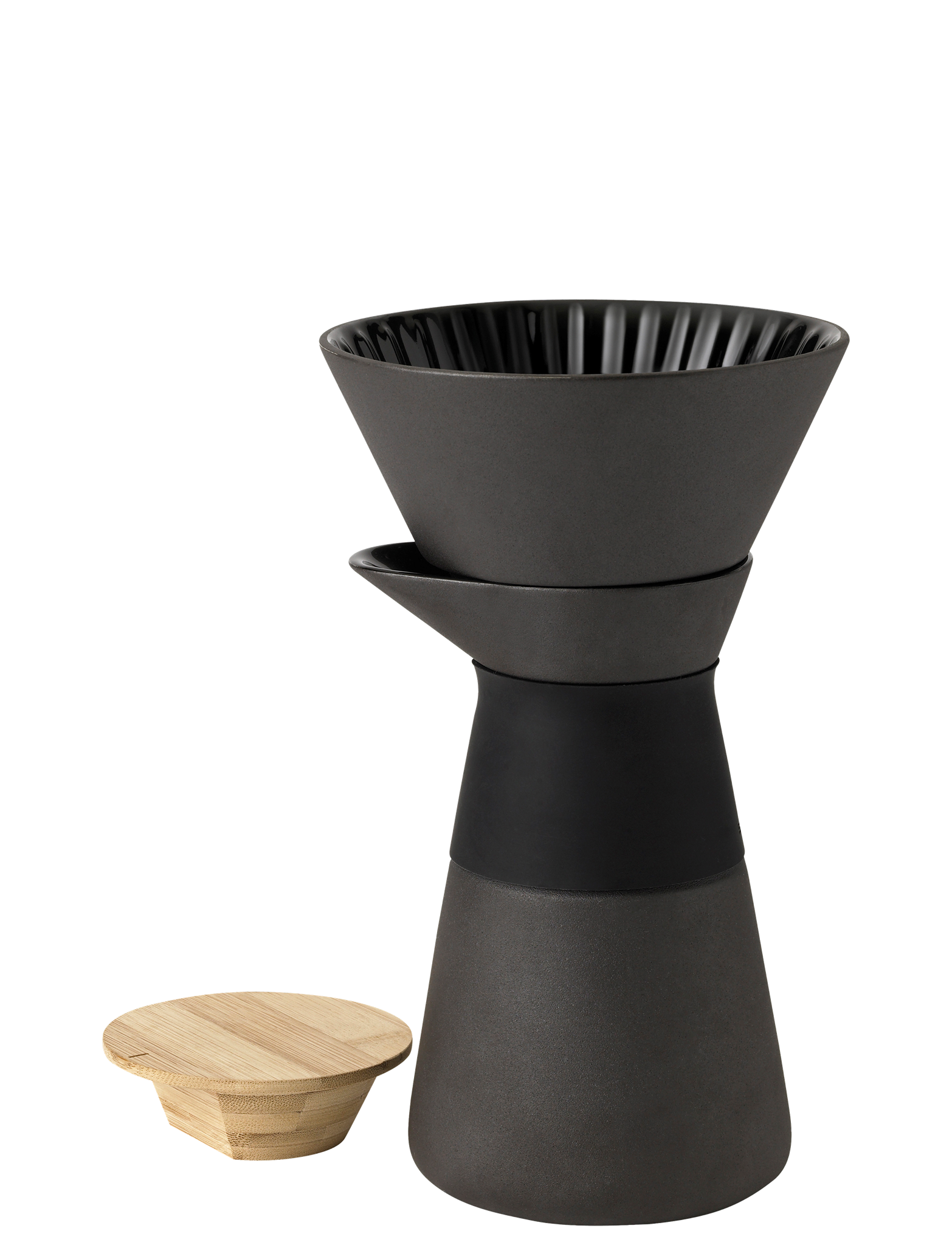 Theo Kaffeefilterkanne 0.6 l – Stilvoller Slow-Brew Kaffeebereiter aus Steinzeug mit Bambusdeckel
