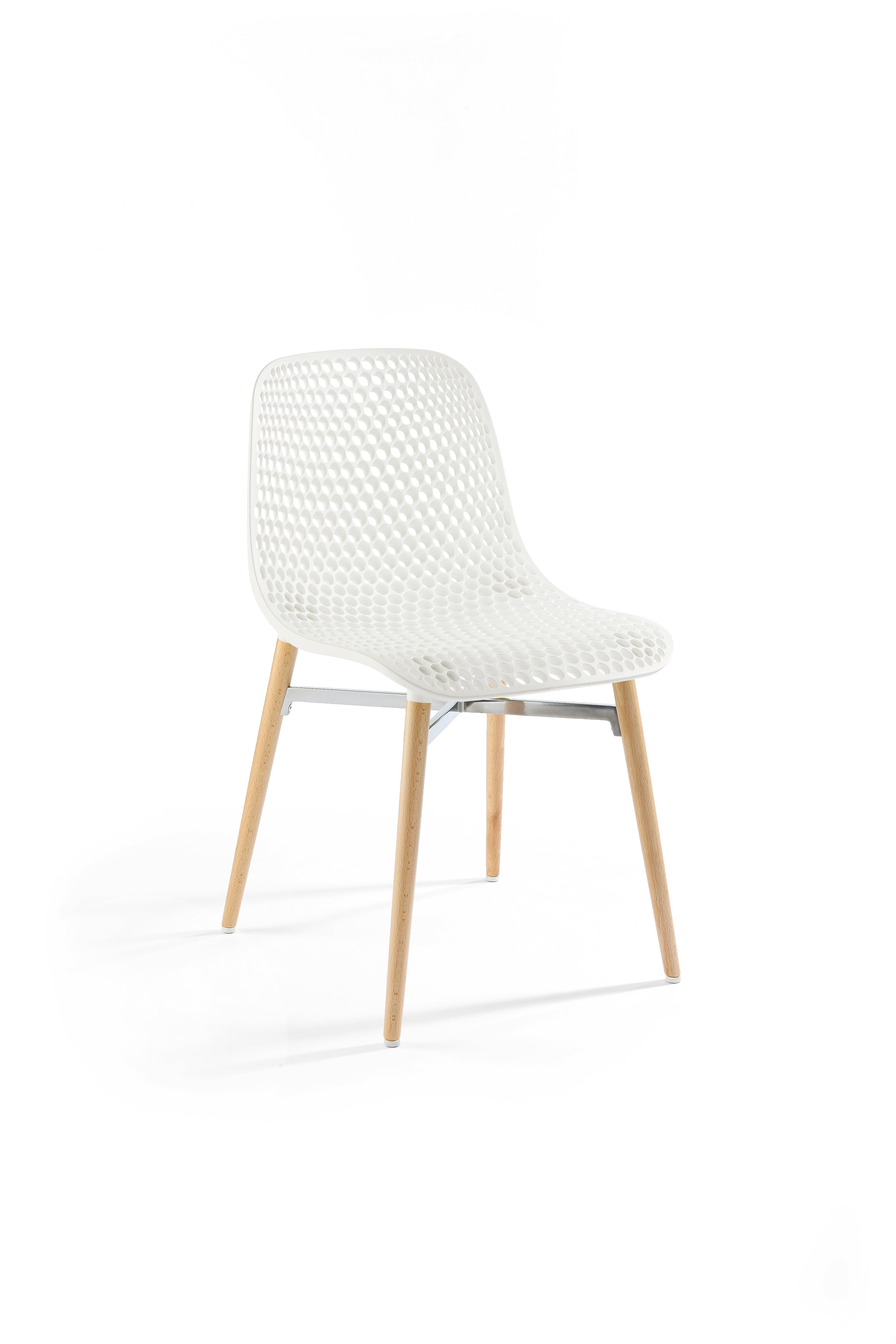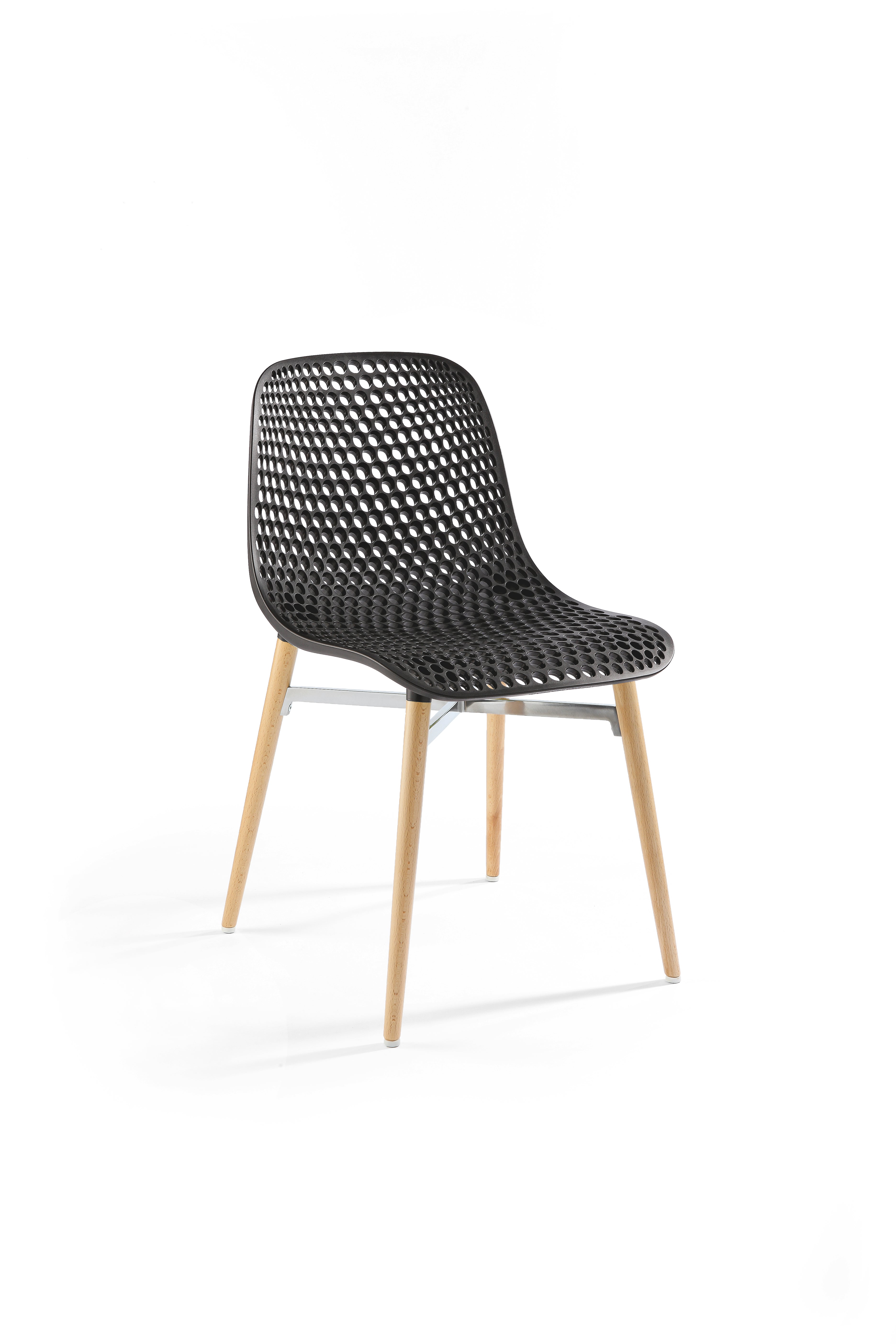 Die ergonomisch geformte Sitzschale besteht aus strapazierfähigem Kunststoff und sorgt für angenehmen Sitzkomfort. Das stabile Gestellkreuz aus Aluminium bietet eine moderne Note, während die Beine aus massivem Buchenholz eine warme, wohnliche Atmosphäre schaffen. Diese Mischung macht „Next“ besonders vielseitig – ideal für Wohnzimmer, Büros oder stilvolle Essbereiche.