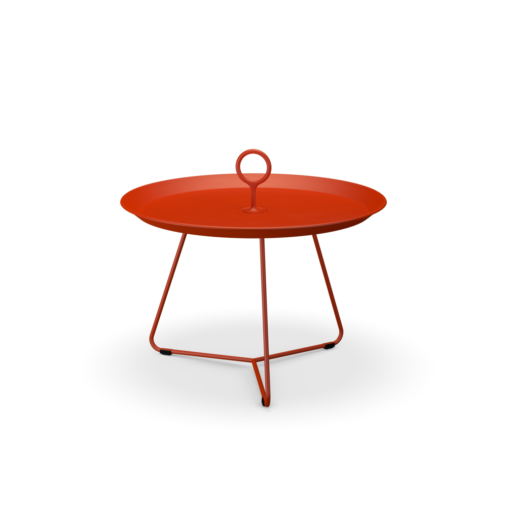 Beistelltisch mit erhöhtem Griff gegen Wasserstau – leicht, wetterfest und elegant. Zwei Größen, für innen und außen geeignet.