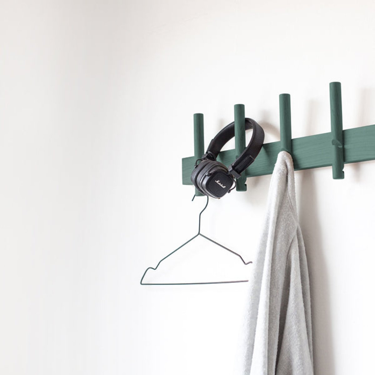 Besonders hervorzuheben sind die vertikal angeordneten Haken mit fein gefrästen Rillen: Diese ermöglichen das gleichzeitige Aufhängen mehrerer Kleidungsstücke und Accessoires, ohne dass es überladen wirkt. So bleibt Ihre Garderobe stets aufgeräumt und gut organisiert – selbst bei wenig Platz.