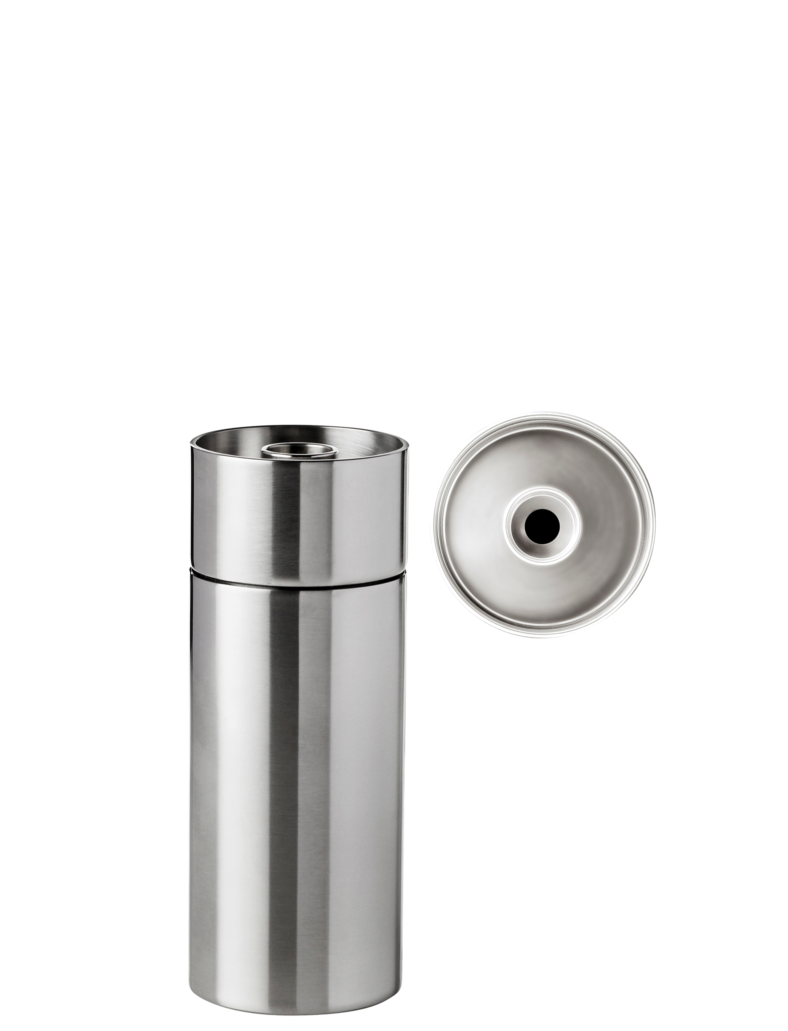 An elegant pepper mill from the Cylinda Line series by Arne Jacobsen. It features a simple, stylish stainless steel design with a beautiful, satin-polished surface. The mill features a ceramic CrushGrind® grinder that grinds salt finely or coarsely.