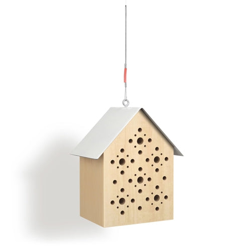 Bee's Inn is a good and animal-friendly nesting site for endangered wild bees, which are finding increasingly limited shelter, especially in dense populations. Since these helpful helpers are indispensable for plant pollination and are also avid insect hunters, the little bees shouldn't be denied the Bee's Inn bee house from the side by side label. The small bee hotel is made of untreated linden wood, and to ensure it's durable and lasts for more than just one season, the wooden house is protected by a powder-coated white steel roof. A steel cable makes it easy to hang from branches, hooks, and more.