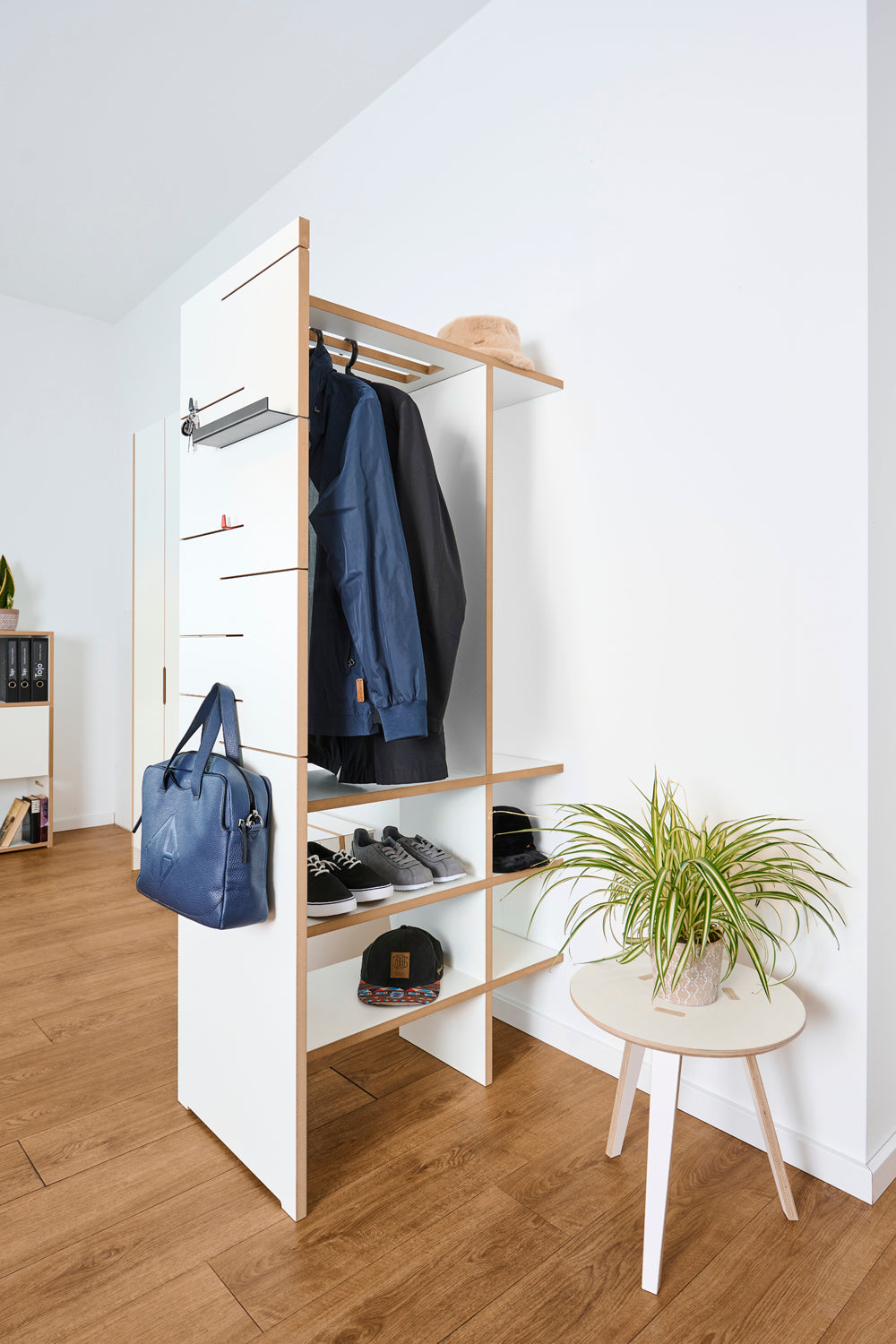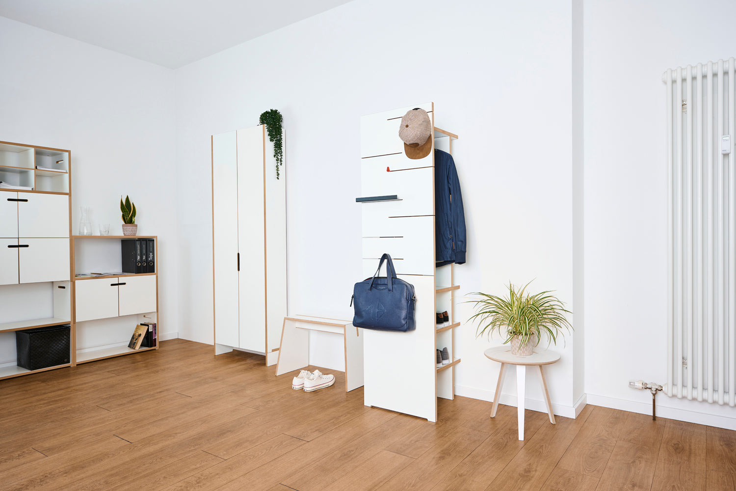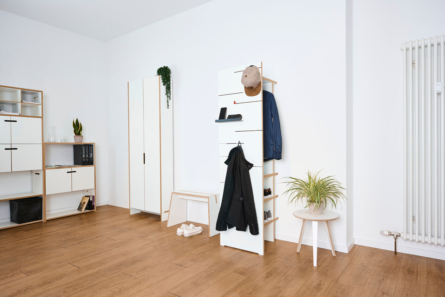 The Tojo-angeber coat rack is a modern designer piece for storing jackets, hats, shoes, bags, keys , and much more. It can be freestanding or wall-mounted to save space , and its simple design makes it a perfect fit for any hallway, entrance, or dressing room.