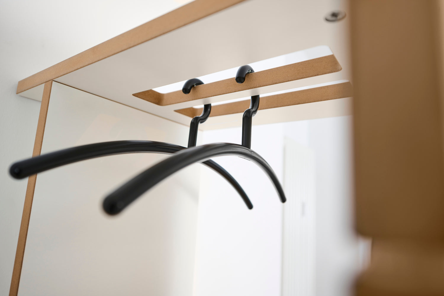 The wardrobe offers plenty of storage space and impresses with clever functions: