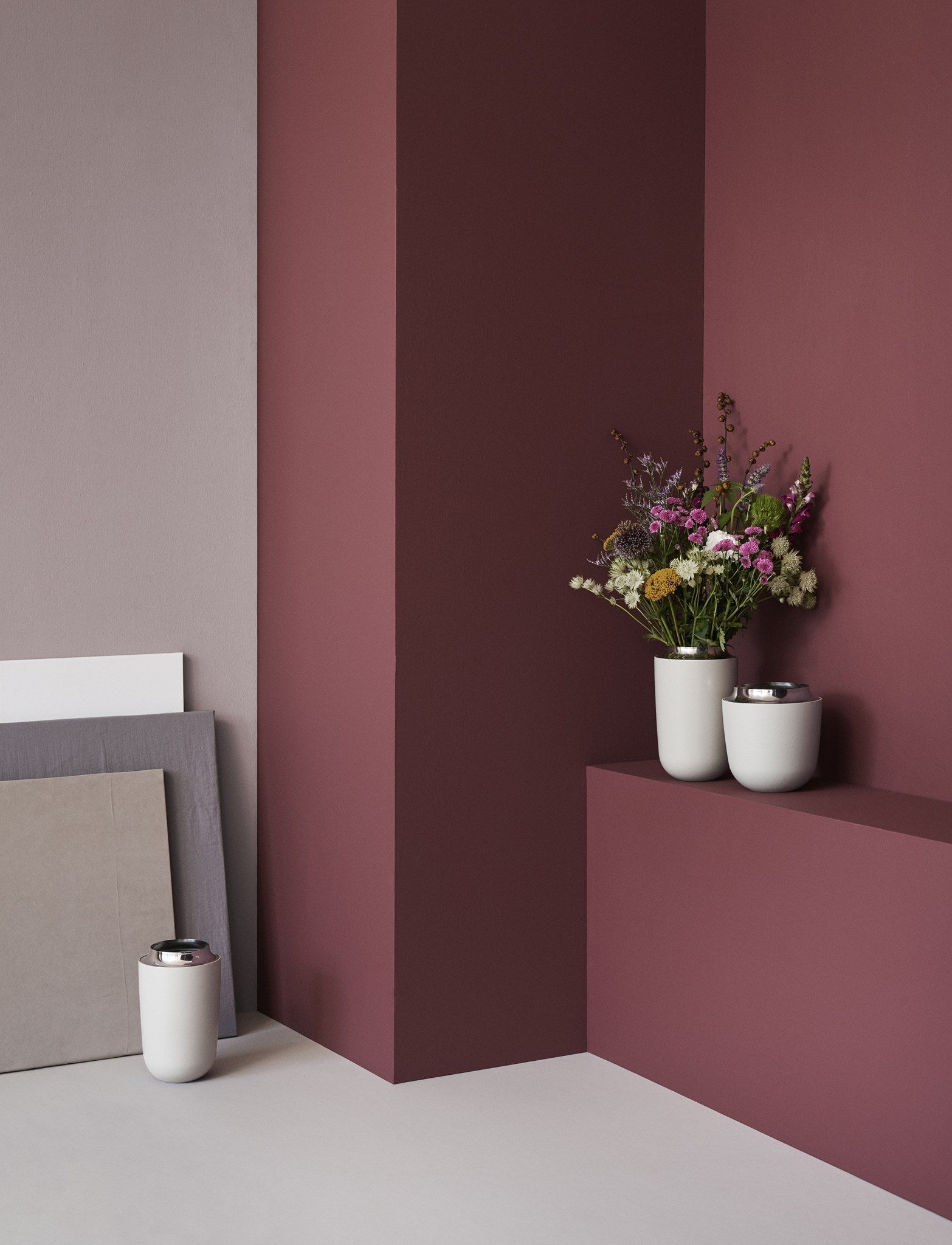 Concave Vasen mit ihren schlichten, harmonischen und ansprechenden Linien sind sowohl mit, als auch ohne Blumen immer ein attraktiver Anblick. Der Körper der Concave Vasen ist aus pulverlackiertem Aluminium, das Oberteil aus blankpoliertem Edelstahl. Dieser Kontrast schafft Ruhe und Harmonie zwischen Blumen und Vase. Die kleine Vase besticht durch das einfache und zeitlose Design, und die Vase passt zu schönen kompakten Blumensträusse aus frischen Schnittblumen oder getrockneten Blumen.