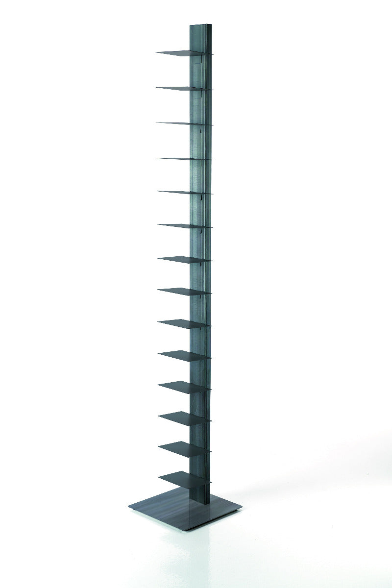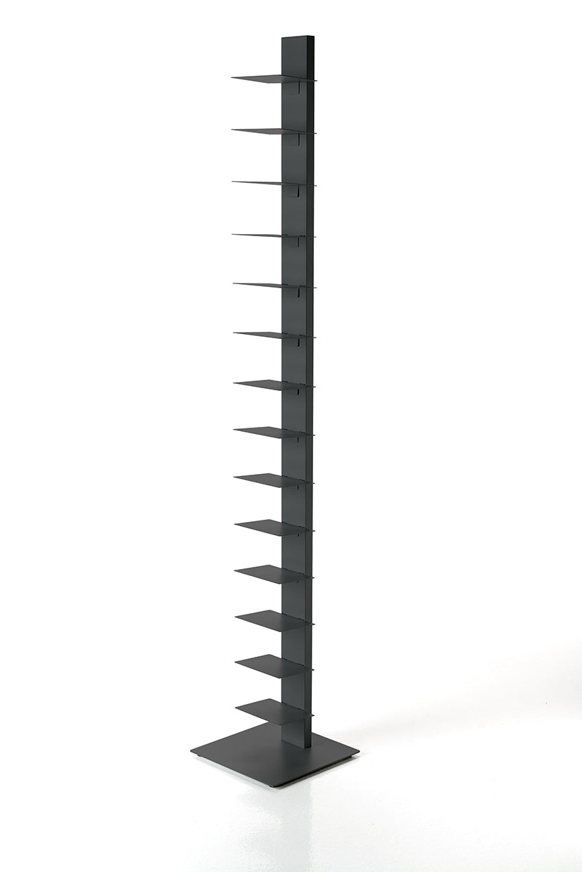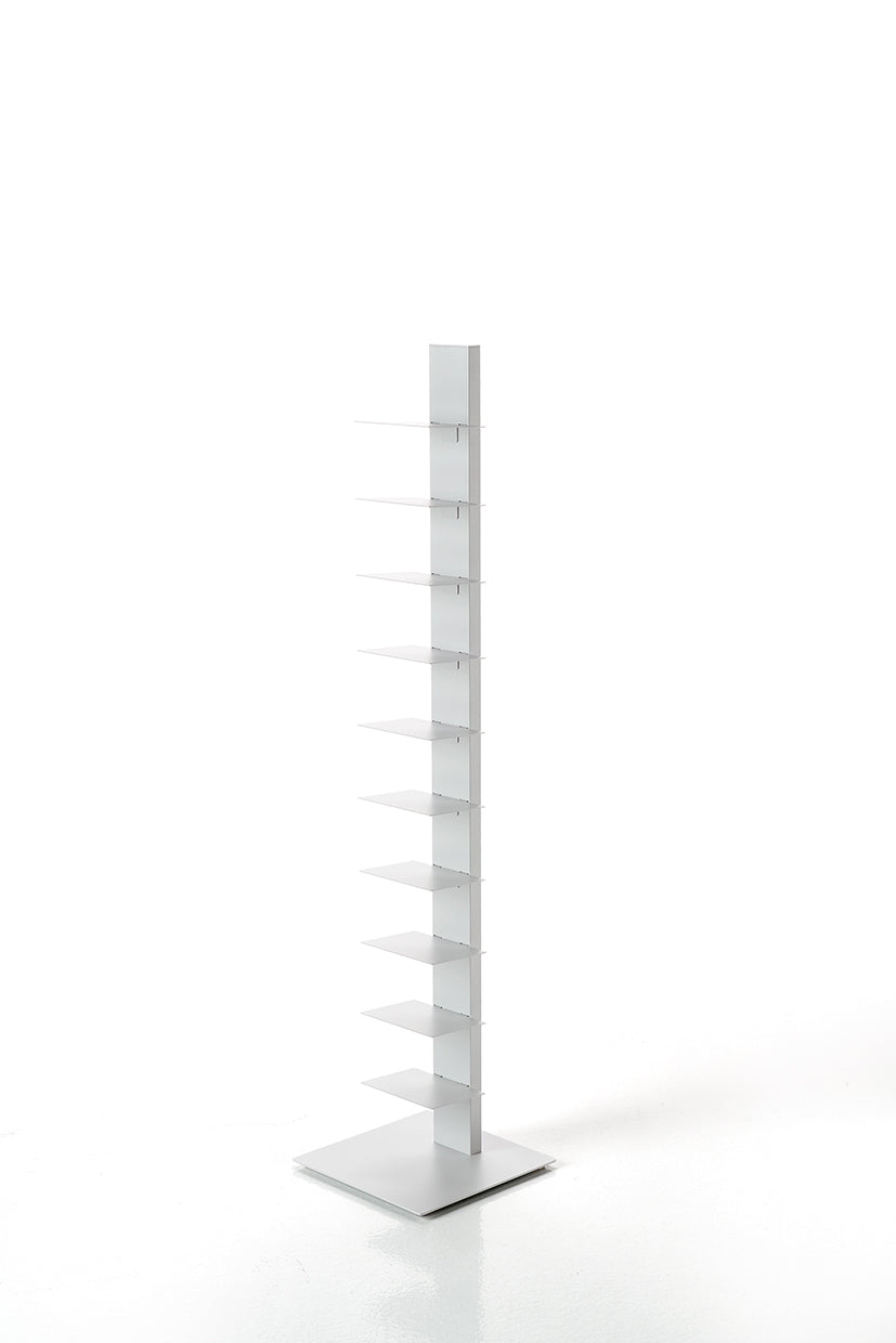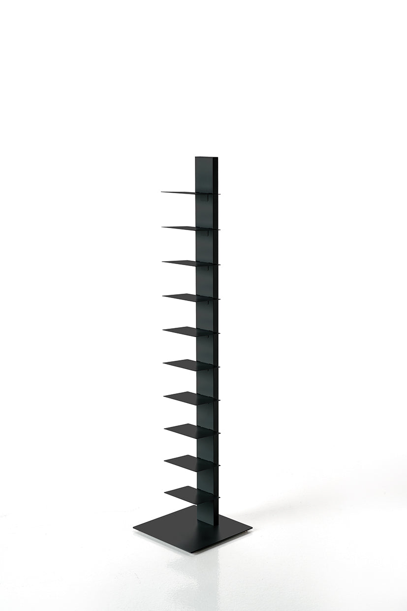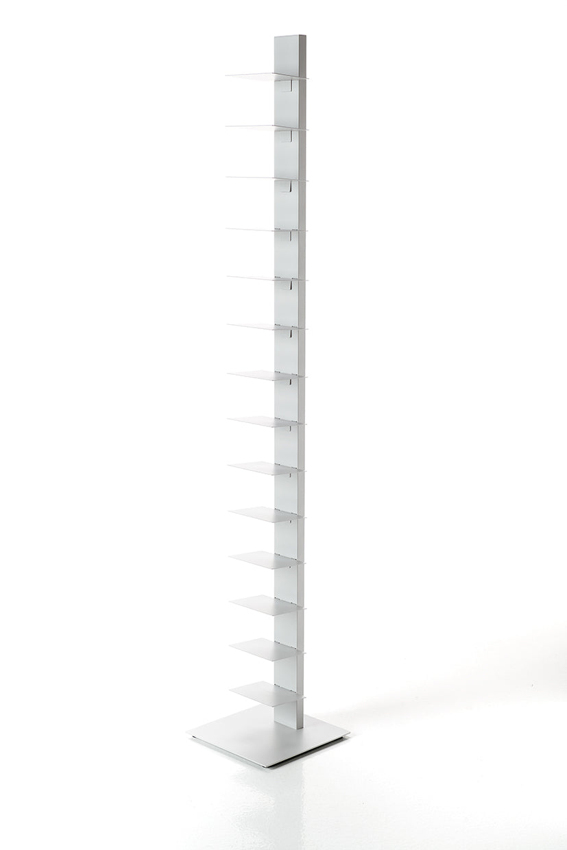 Das Sapiens Bücherregal vom italienischen Designer Bruno Rainaldi ist ein minimalistisches Design-Statement für echte Buchliebhaber. Mit seiner vertikalen Ausrichtung und klaren Linienführung schafft es eine elegante Illusion: Je mehr Bücher Sie einordnen, desto mehr tritt die tragende Struktur in den Hintergrund – Ihre Sammlung scheint förmlich zu schweben.