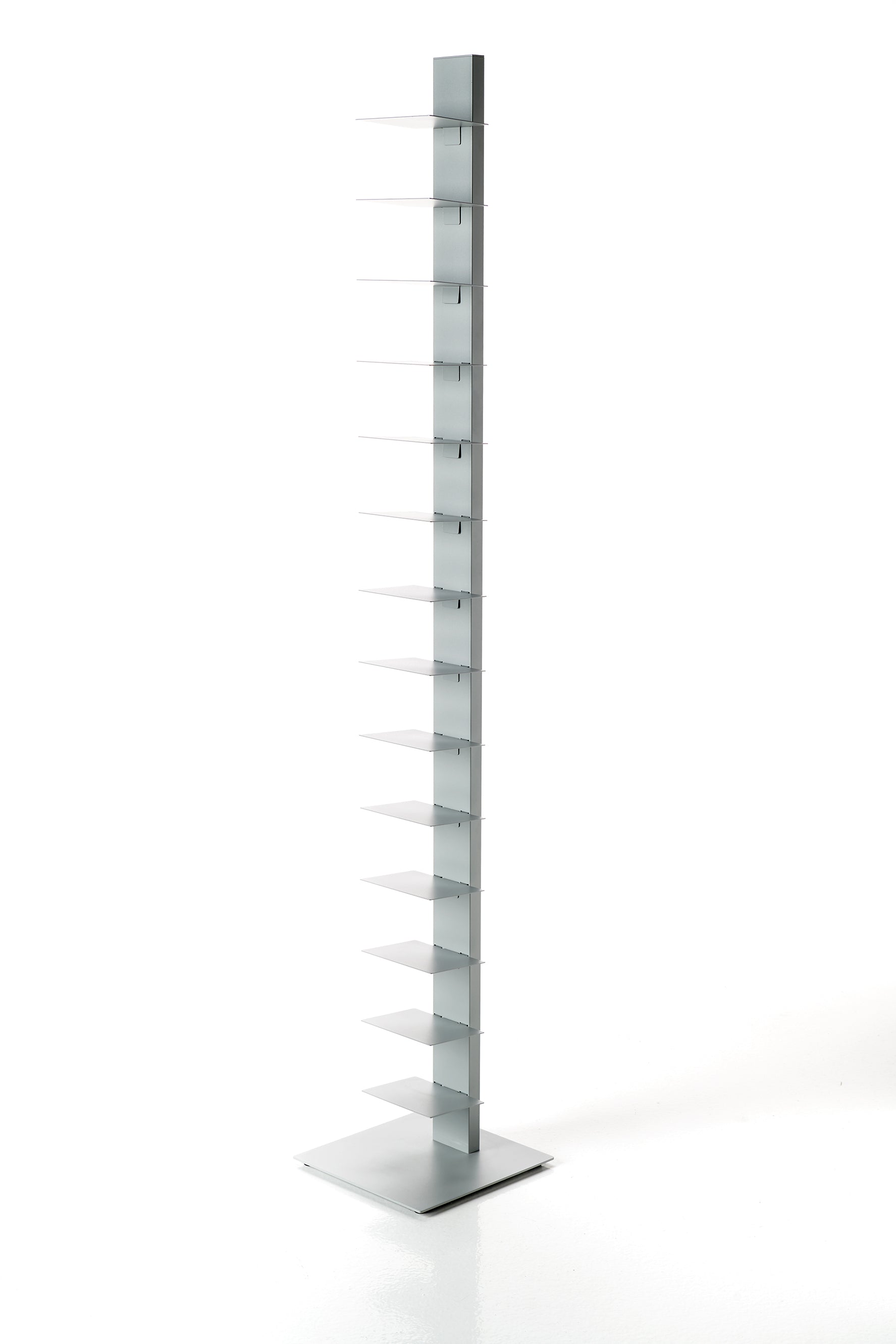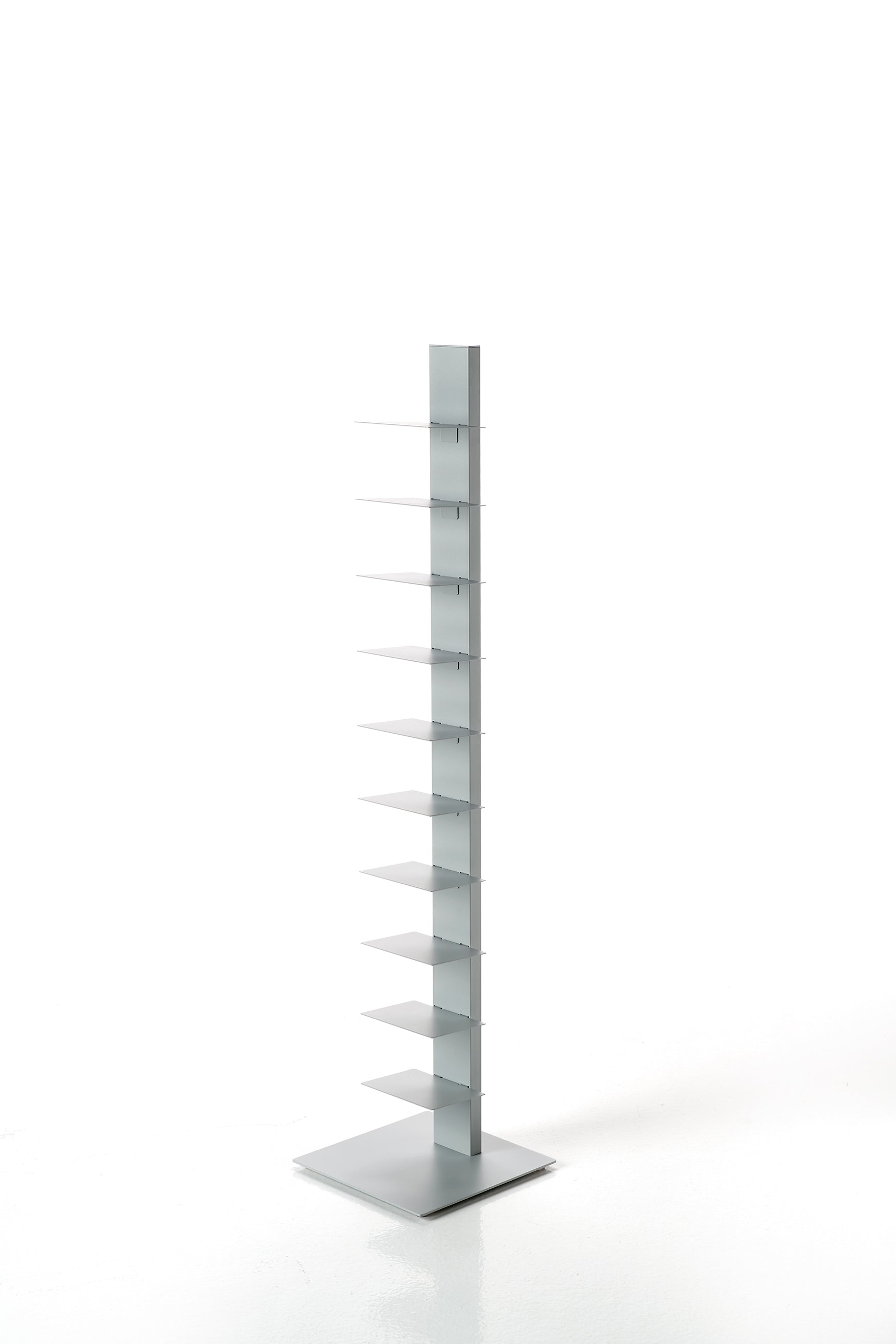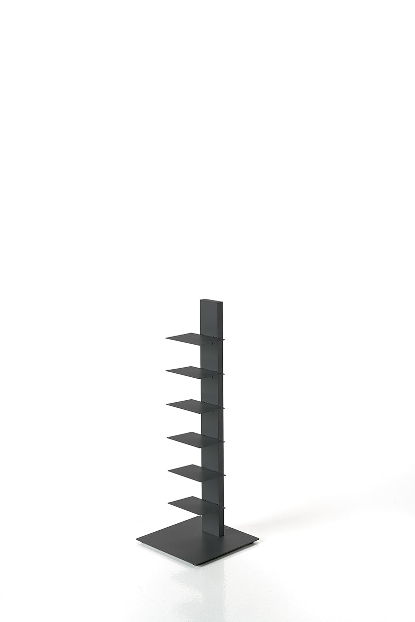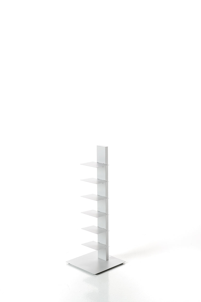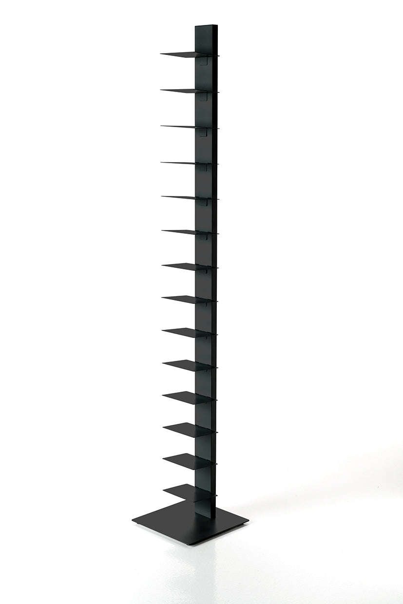 Das Sapiens Bücherregal vom italienischen Designer Bruno Rainaldi ist ein minimalistisches Design-Statement für echte Buchliebhaber. Mit seiner vertikalen Ausrichtung und klaren Linienführung schafft es eine elegante Illusion: Je mehr Bücher Sie einordnen, desto mehr tritt die tragende Struktur in den Hintergrund – Ihre Sammlung scheint förmlich zu schweben.