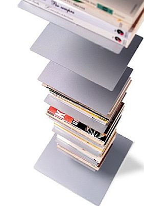 Die Bücher scheinen zu schweben, während die Konstruktion optisch zurücktritt – ein faszinierender Effekt.